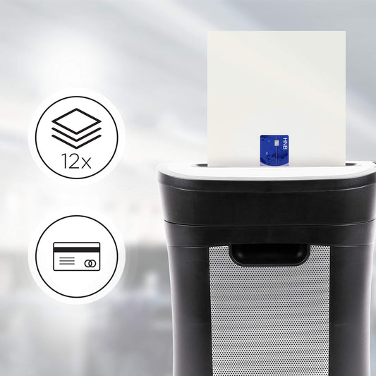 Duronic Cross Cut Paper Shredder PS571, Shred 12 Sheet Heavy Duty Small Electric Shredders, Data Shredding Machine for Home Use, Office, Shreds Papers, Credit Cards, Envelopes, Documents - Black, P4