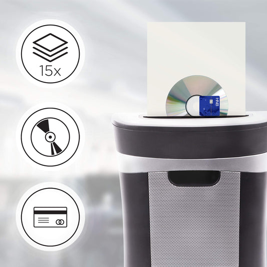 Duronic 15 Sheet XXL Cross Cut Paper Shredder PS581 Extra Large Electric Paper Shredders for Home Office Heavy Duty Shredder with 31L Pull Out Bin Shred CD Card Mail Staple & Clips