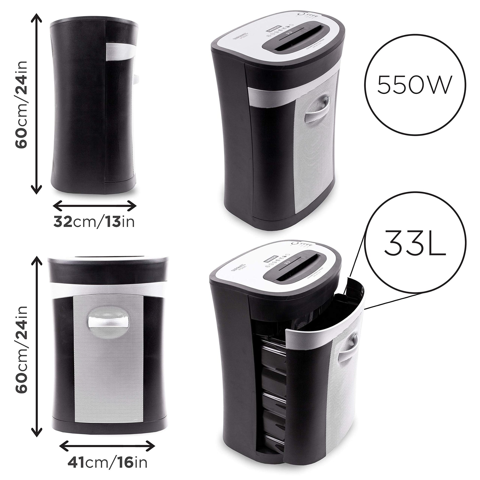 As well as giving the shredder a contemporary look, the silver-coloured see-through mesh front panel allows you to see when it is getting full. It also sounds a small alarm to let you know when the bin is full.